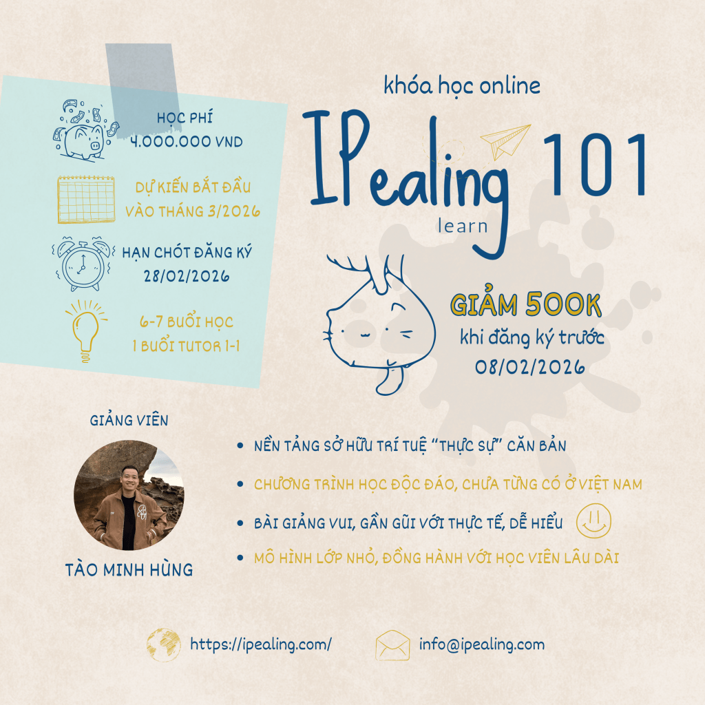 Mình rất hy vọng IPealing 101 sẽ đặt ra một tiêu chuẩn mới về đào tạo về IP tại Việt Nam cả từ phía người dạy lẫn người học, sẽ được mọi người đón nhận, ủng hộ và từ đó mình sẽ có thêm động lực để tạo ra nhiều nội dung hay ho hơn.